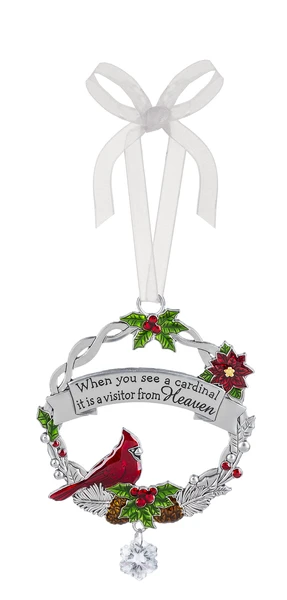 This beautiful metal Christmas cardinal ornament is a reminder that when you see a cardinal, it’s a special visitor from Heaven. Hang this ornament on your tree and remember to cherish the moments with your loved ones this holiday season!