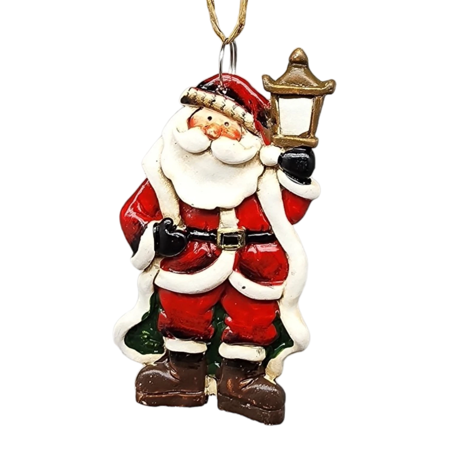 Illuminate your holiday season with this delightful Santa Claus ornament, standing at 3 inches tall and crafted from durable polyresin. This charming flat ornament features Santa in his iconic red suit, holding a lantern that brings a warm, nostalgic glow to your festive decor. With intricate detailing and rich colors, Santa’s jolly expression and rosy cheeks capture the joyful spirit of Christmas, making this piece a wonderful addition to any holiday collection.
