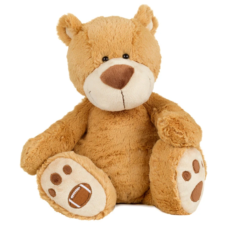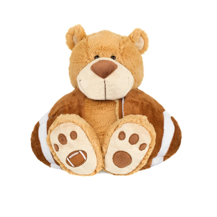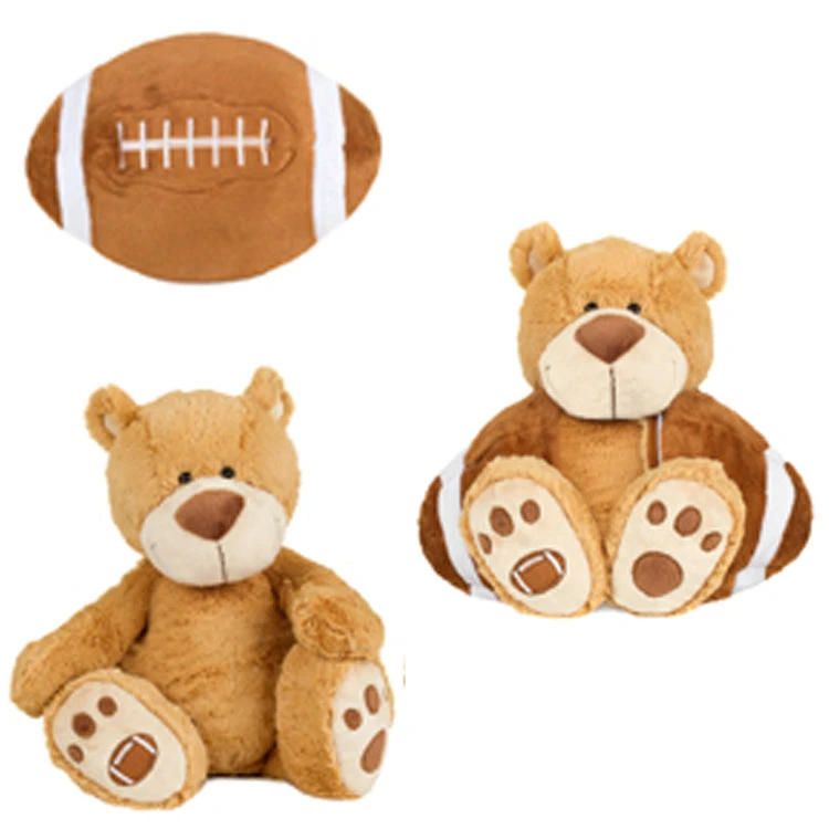 - Beautiful, soft, cuddly 16″ tan teddy bear converts into an 12″ x 8″ x 8″ football