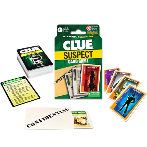 Use your hand of cards to determine the suspect, weapon and location of the crime. Was it Colonel Mustard in the Dining Room with the Knife? A true Clue experience is “in the cards!”