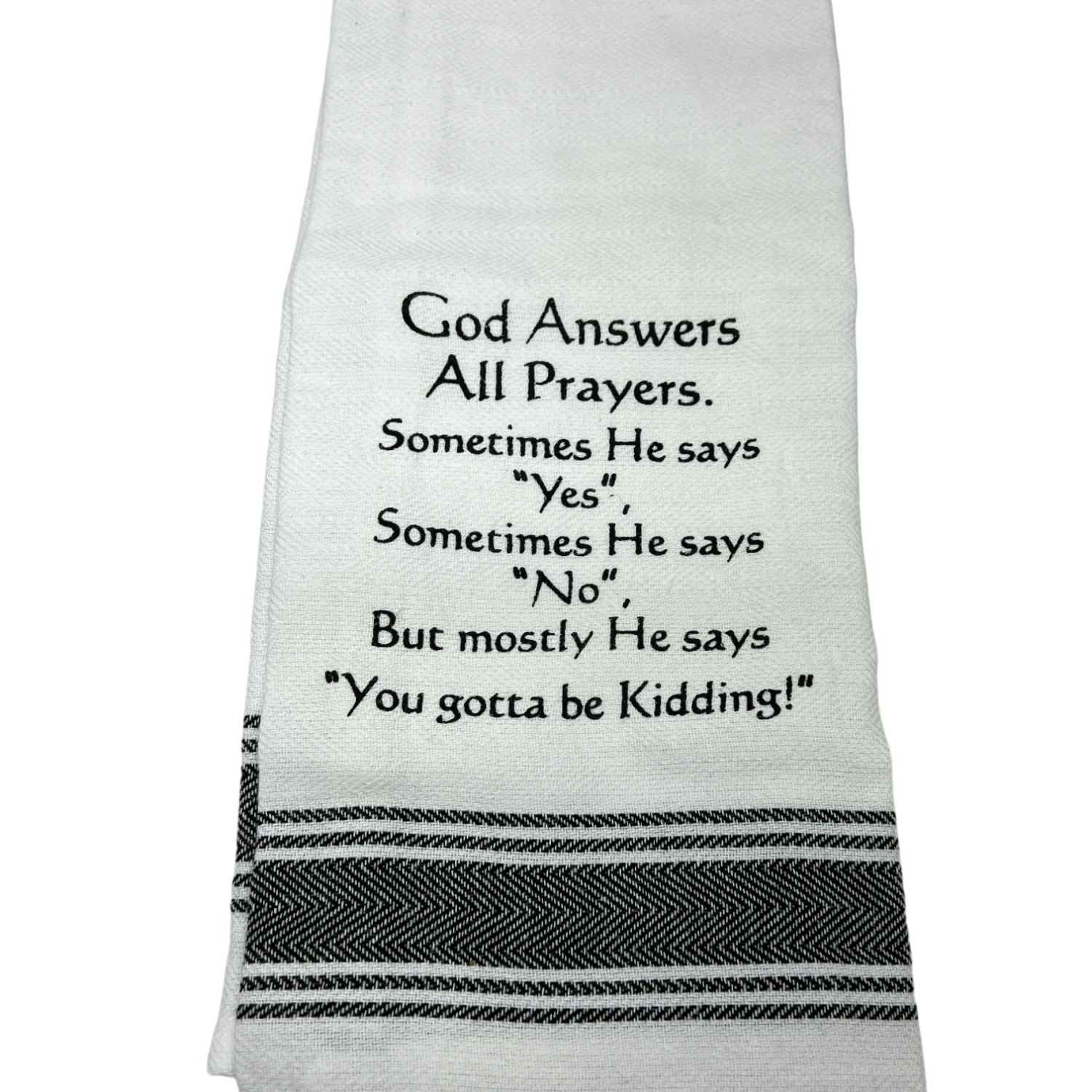 God answers all prayers.. Sometimes he says yes, sometimes he says no. But mostly He says “You gotta be kidding!