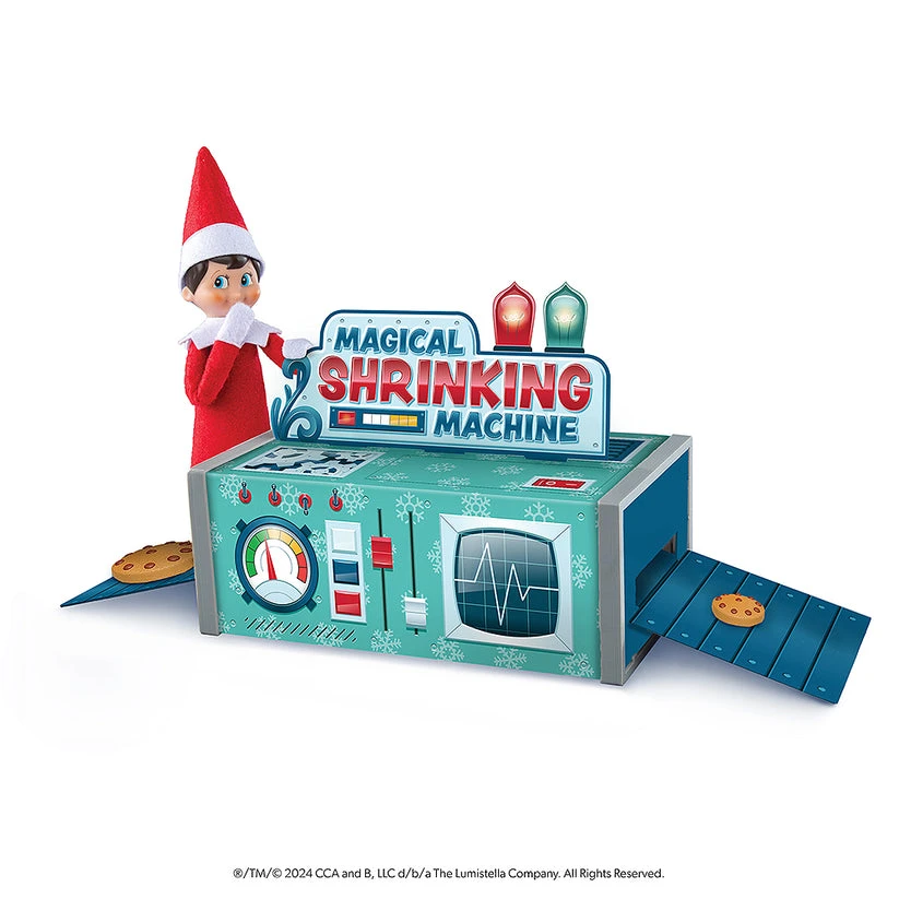 Your elf will also want to bring the laughs and show off their magic with the magical shrinking machine. Kid-size cookies went in, elf-size cookies came out. What a fun surprise for an elf scene!