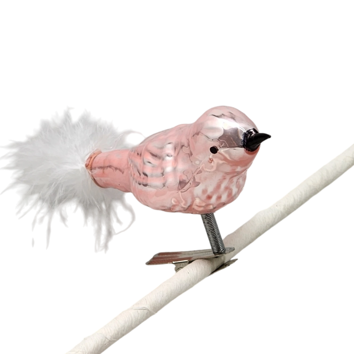 Add a whimsical touch to your holiday decor with this charming set of decorative birds. Each of these delightful glass birds features a unique design, including shimmering pink hues and sparkling glitter accents, making them perfect for enhancing your festive atmosphere. With sturdy clips, these birds can be easily secured to branches, wreaths, or garlands, bringing life and character to your seasonal displays.