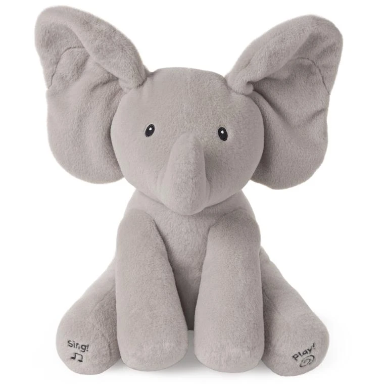 GUND is proud to present Flappy the Elephant – an adorable singing animated plush with two different play modes. Press the left foot to play an interactive game of peek-a-boo, and the right to hear the song ” Do Your Ears Hang Low” in a cute child’s voice. Ears move and flap during play. Surface-washable for easy cleaning. Appropriate for all ages. Three ” AA” batteries included with purchase. About GUND: Since 1898, GUND has been a premier plush company recognized worldwide for quality innovative products. Building upon award-winning designs, we continue to develop original and licensed products to appeal to the next generation of customers. Each of our plush toys is constructed from premium materials for unparalleled softness and huggability.
