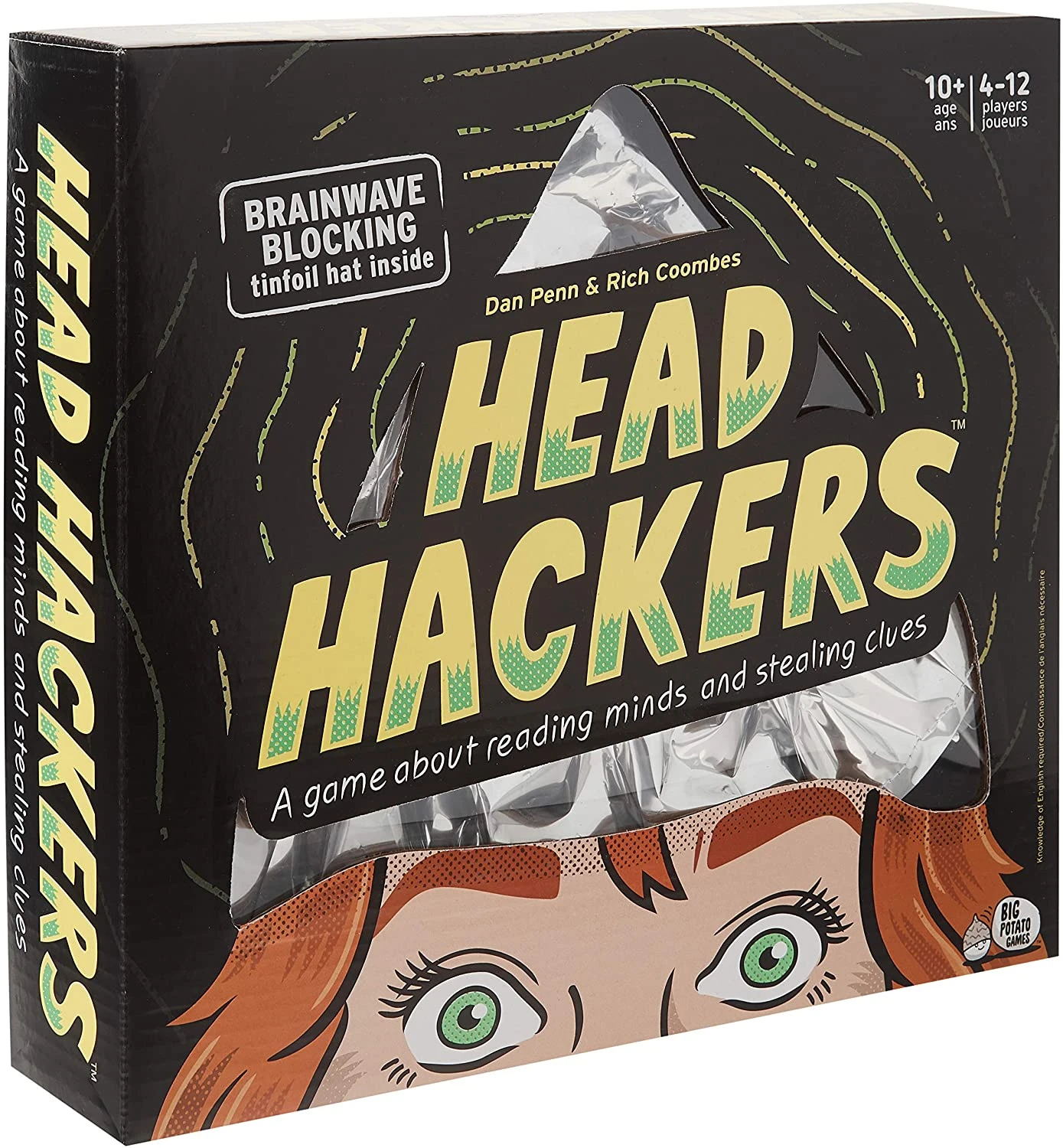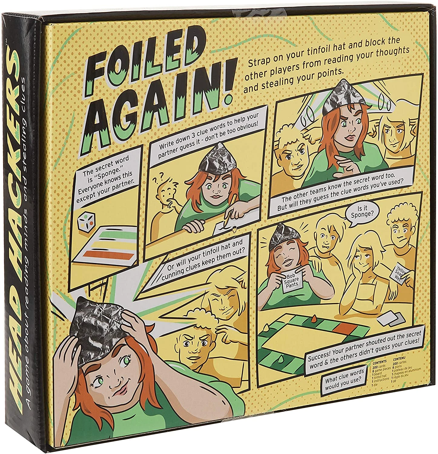 You get three words. Choose them wisely. Head Hackers is a very simple party game. Everyone splits into teams of two (or more if you like). One team goes first and they split into The Guesser and The Writer. The Writer puts on the tinfoil hat, in order to deflect the other teams from reading their thoughts, and The Guesser closes their eyes. Now a Secret Word is revealed which everyone can see, except The Guesser. The Guesser now opens their eyes and the game begins. The Writer must write down three helpful Clue Words that they think will lead The Guesser to the correct Secret Word, but which are obscure enough that won’t be ‘hacked’ by the others. Now the other teams try to infiltrate the mind of The Writer and second-guess which Clue Words they have written down, by writing down three words of their own. The Guesser now declares what they think the Secret Word is.