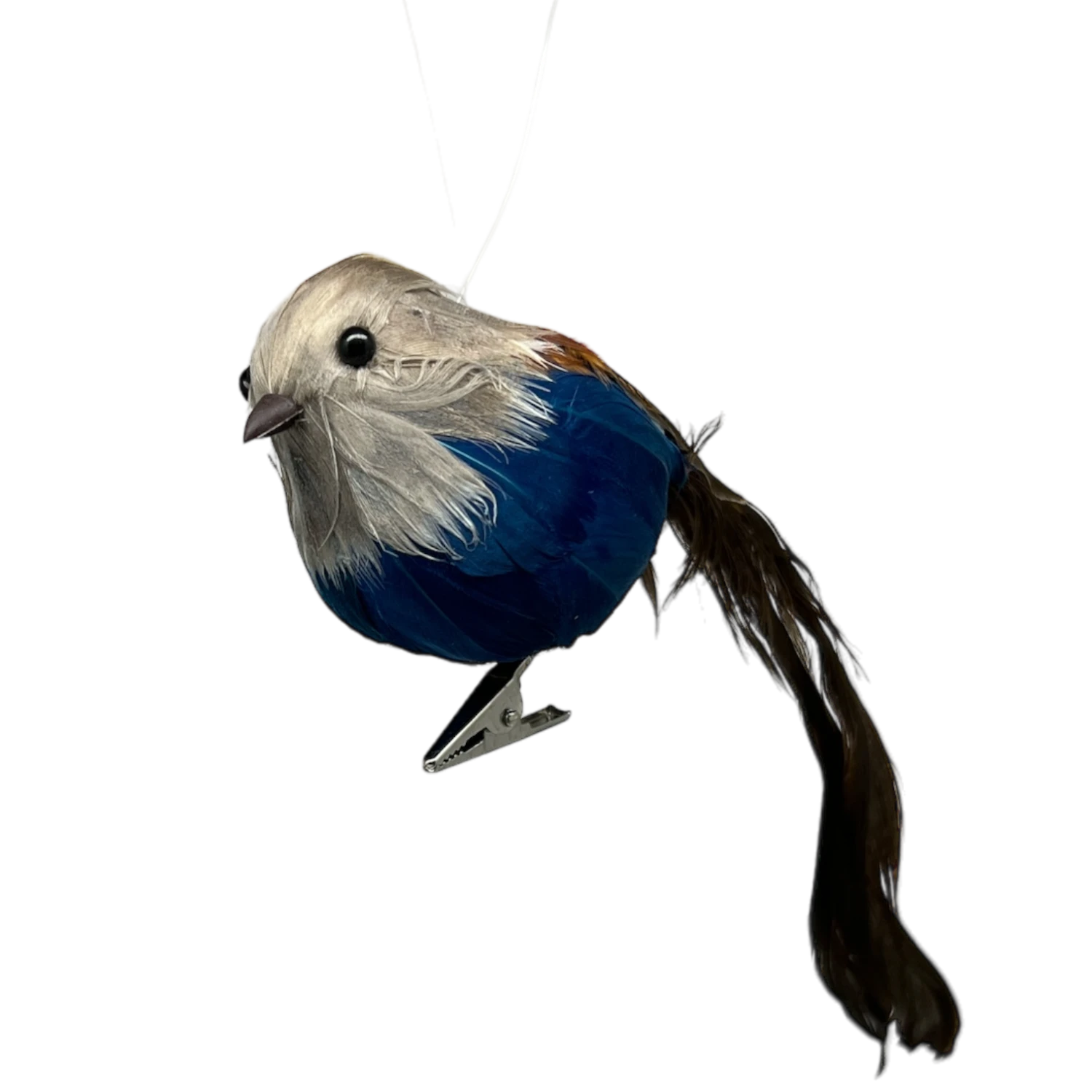 Enhance your holiday decorations with the captivating beauty of our Holiday Bird Ornament. This beautifully detailed ornament features a lifelike bird adorned with soft feathers in striking shades of blue, cream, and brown, capturing the elegance and charm of nature. The bird’s realistic design includes a fluffy, white-tinged chest and a long, graceful tail feather, adding a whimsical and sophisticated touch to your festive decor.