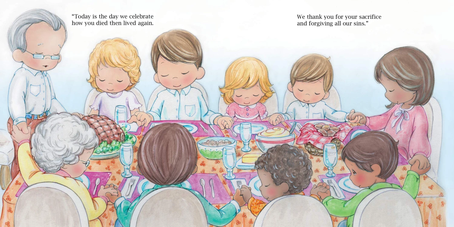 Hop out of bed and grab your Easter basket to celebrate this joyful Easter day! Bringing to life the special meaning of this religious springtime holiday for kids ages 4-7, this charming Christian picture book is filled with delightful text and warm illustrations about hunting for eggs, attending Sunday church, and rejoicing in God’s grace with family . An enchanting stuffer for any Easter gift basket or a meaningful Christian gift for kids anytime of the year, this Precious Moments children’s book will stay with your child throughout their early moments and beyond.