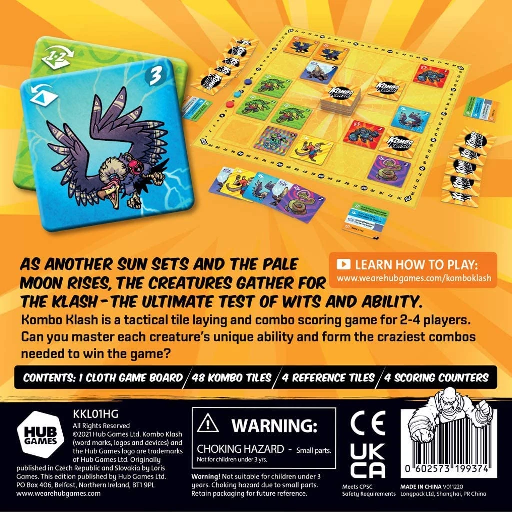 Kombo Klash is a tactical tile-laying and combo scoring game. Draw and play tiles with awesome Kombo creatures on them. Can you master each creature’s unique ability and form the craziest combos needed to win the game?  Kombo Klash is easy to teach and quick to play, but you’ll be blown away by the depth of strategy that can be used when setting up combos while placing tiles.