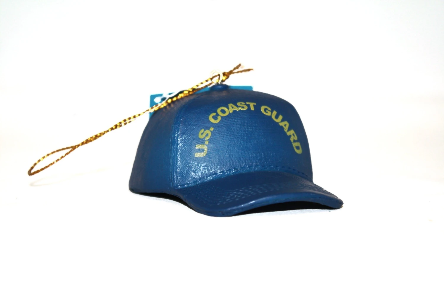 This U.S. Coast Guard blue hat ornament from Kurt Adler is a wonderful way to show your support for the sailor in your family. It features a blue baseball style cap with gold lettering.