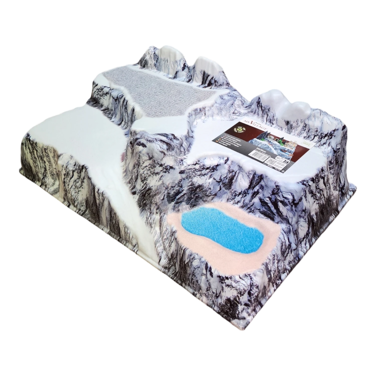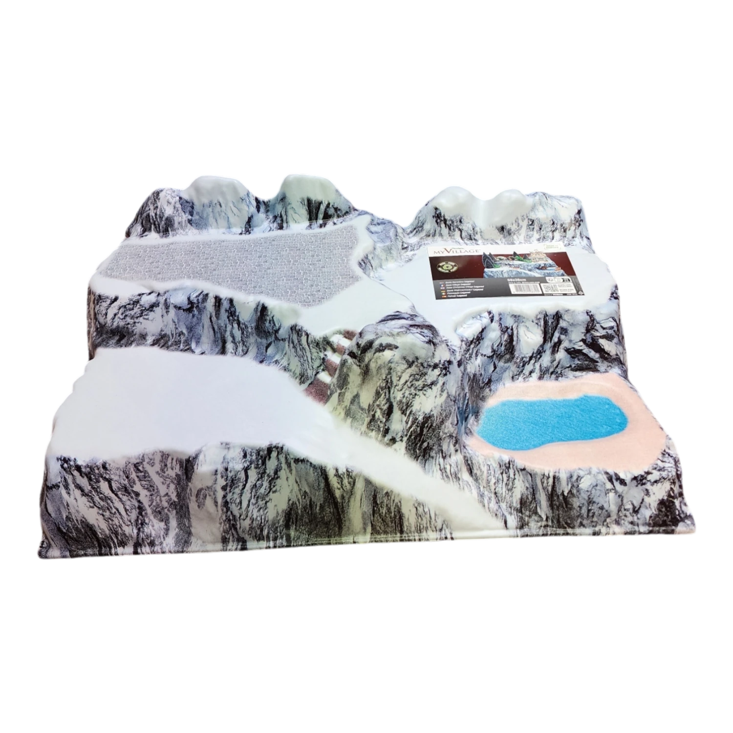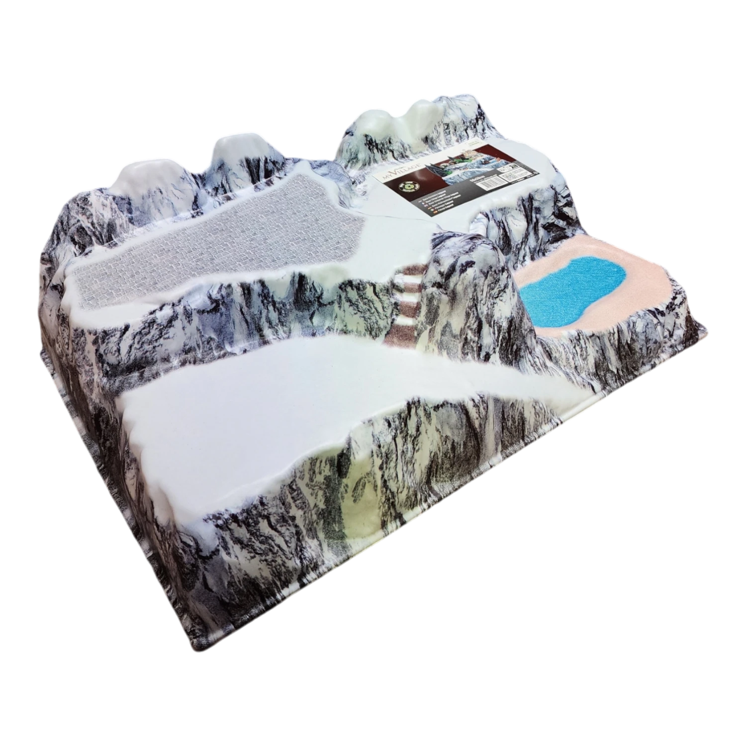Step into a world of whimsical winter fun with this captivating village landscape display. Measuring about 22.8 inches long, almost 15 inches wide, and 7.5 inches high, this delightful piece showcases a bustling mountain scene teeming with festive activities. From children joyfully sledding down snowy slopes to families gathering in front of a cozy, inviting chalet, every inch of this display captures the charm and excitement of the holiday season.