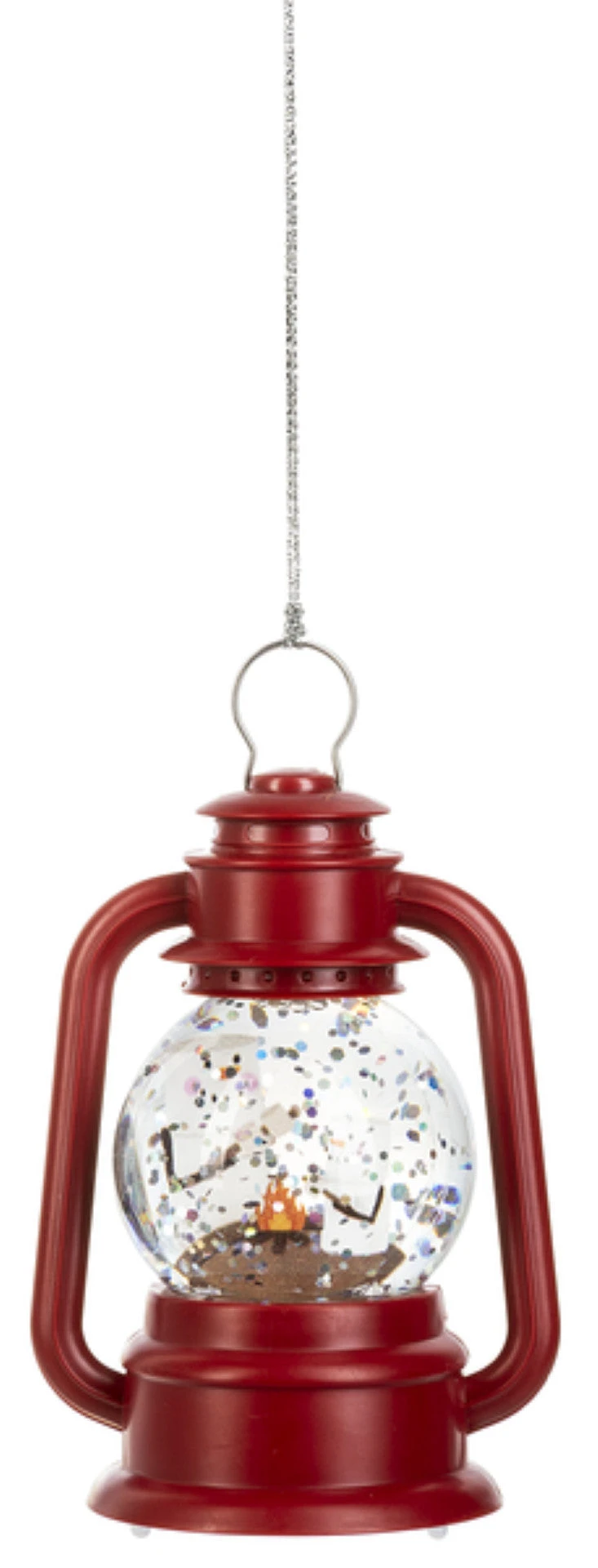 Mini Lantern snowglobe lights up from within using built in LEDs.