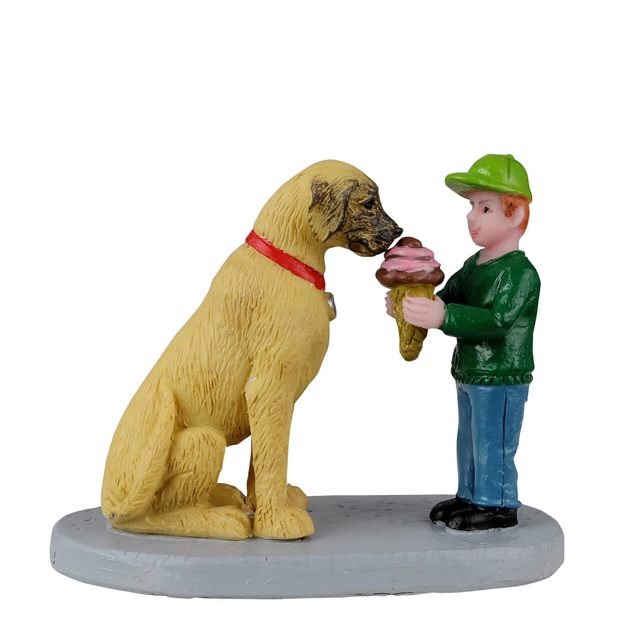 They say a dog is man’s best friend, and when you add ice cream to the picture you have a dream trio! This sweet little Caddington Village figurine features a boy feeding some delicious-looking ice cream to his canine companion. The pup looks patient and appreciative, and we hope the boy gets to have a few mouthfuls before the entire cone disappears!