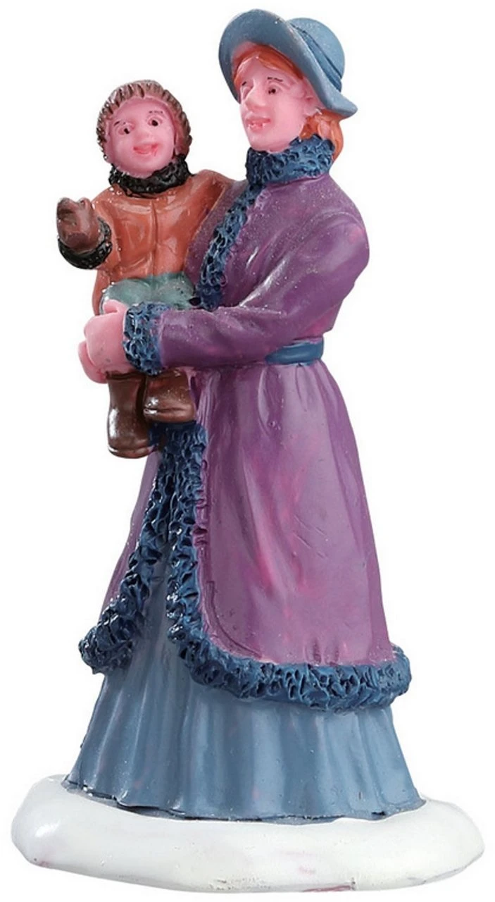 Bring a touch of nostalgia to your Christmas village with this charming figurine of a mother holding her little one, capturing the spirit of holiday joy. Standing at just over 2.5 inches tall and made from durable polyresin, this delightful piece adds a heartwarming scene to any winter display. Imagine them bundled up in cozy winter attire, ready to explore the festive outdoor market or wander through snow-dusted streets filled with twinkling lights. This lovely illustration of family togetherness is perfect for sparking warm memories during the holiday season.