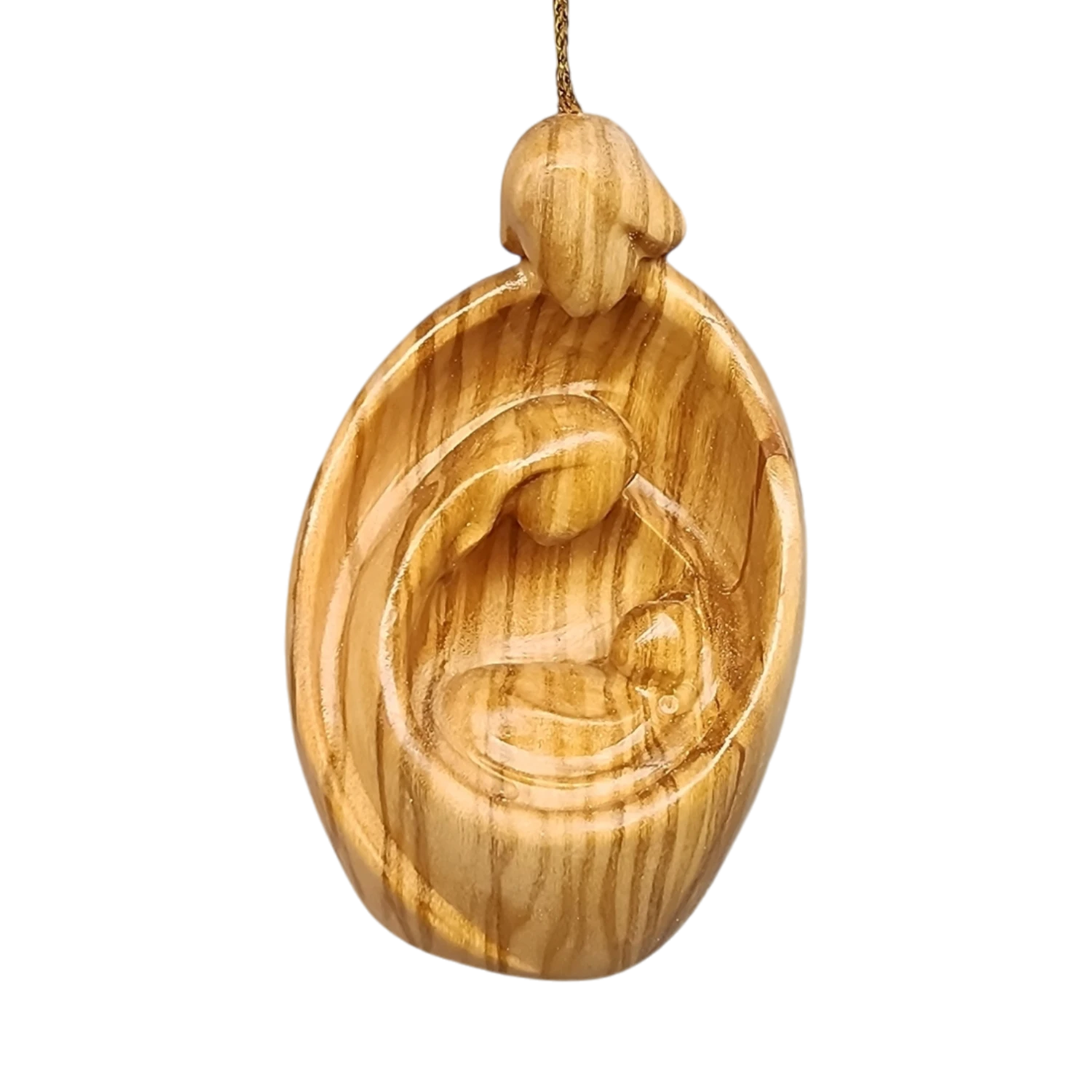 Presenting our beautifully crafted “Holy Family” nativity ornament, hand-carved from exquisite Olive wood in Italy. This stunning piece features an intricate depiction of Mary, Joseph, and Baby Jesus, capturing their serene and loving essence within a sleek, oval-shaped frame.