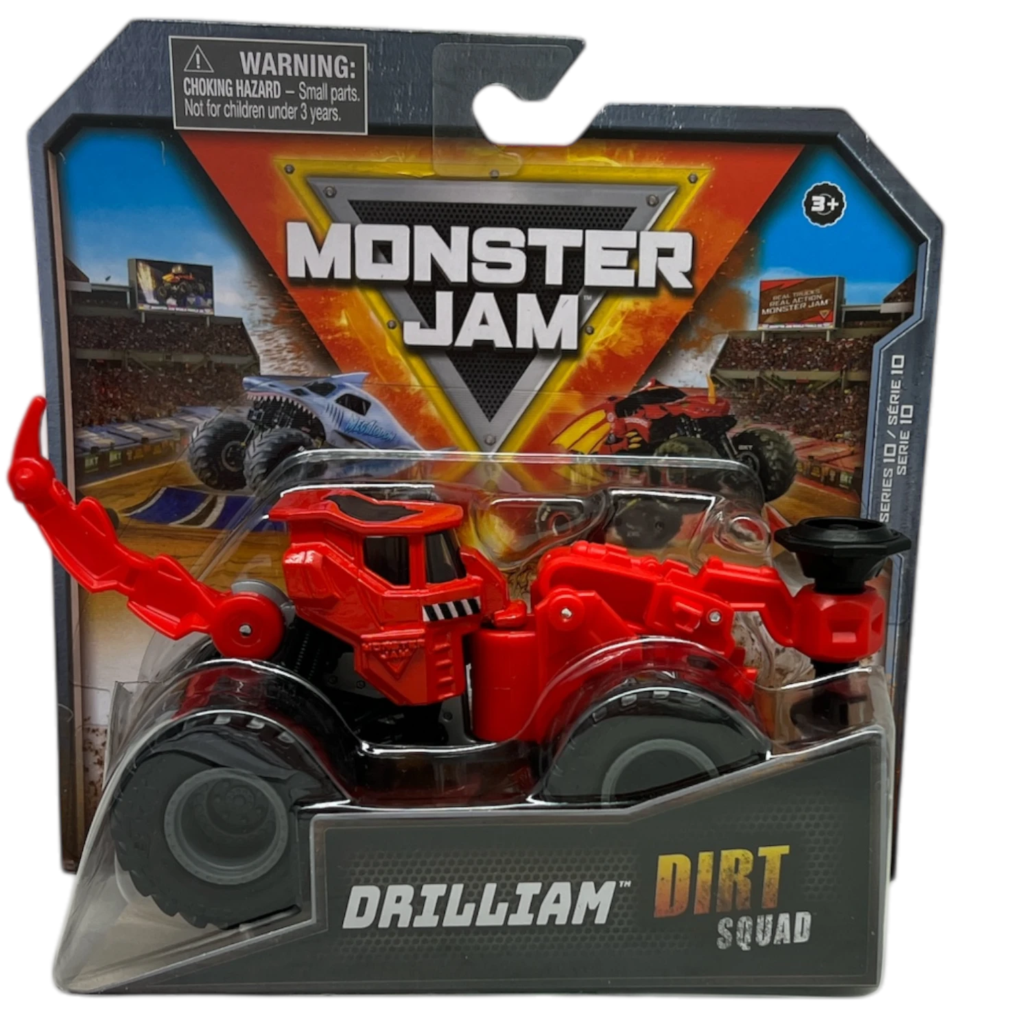 Rev up the excitement with the Monster Jam 1:64 Scale Die Cast Dirt Squad – Drilliam! This bold mini monster truck is built to conquer the dirt with its striking red design and dynamic features. As part of the Dirt Squad series, Drilliam showcases the fearless spirit of off-road adventures, making it a must-have for fans and collectors alike.