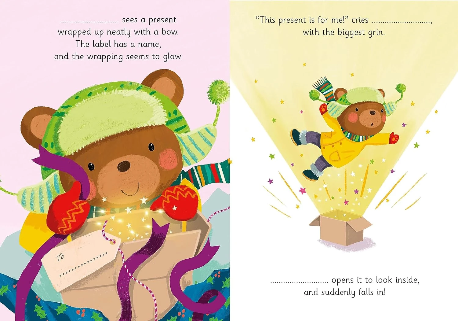 When a magical present transports YOUR CHILD to the North Pole, an amazing journey begins! Travel to Santa’s workshop on the North Pole Express, as your little one meets friends along the way, including a gingerbread family, Santa’s elves, and even Mrs. Claus. Santa has a special present in store―what could it be? With sweet illustrations and rhyming text, this book features space to write in YOUR CHILD’S NAME on every page. Celebrate the holiday season and the little one in your life with this magical personalized story!