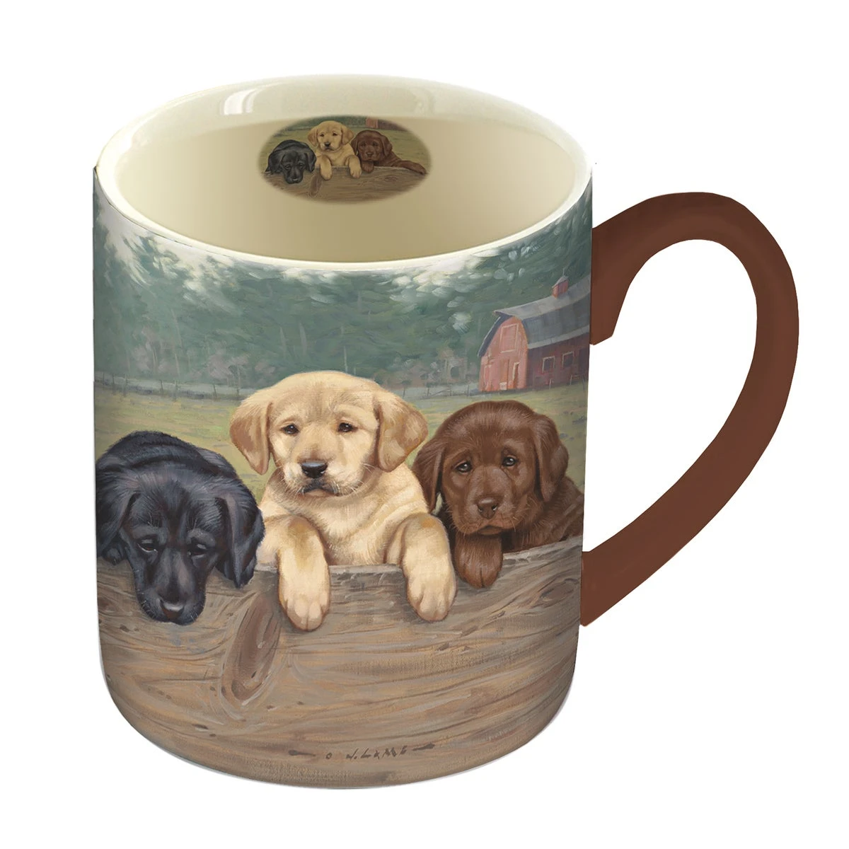 Enjoy your coffee out of this On The Fence Coffee Mug, featuring Jim Lamb’s artwork of adorable Labrador puppies. Both microwave and dishwasher safe, this ceramic mug holds 14 oz. of coffee or tea and comes in a coordinating gift box.