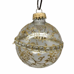 Christmas By Krebs 2 5/8 Glass Balls – Gold Caps – Glitter Band Snowflake – 4 Pack