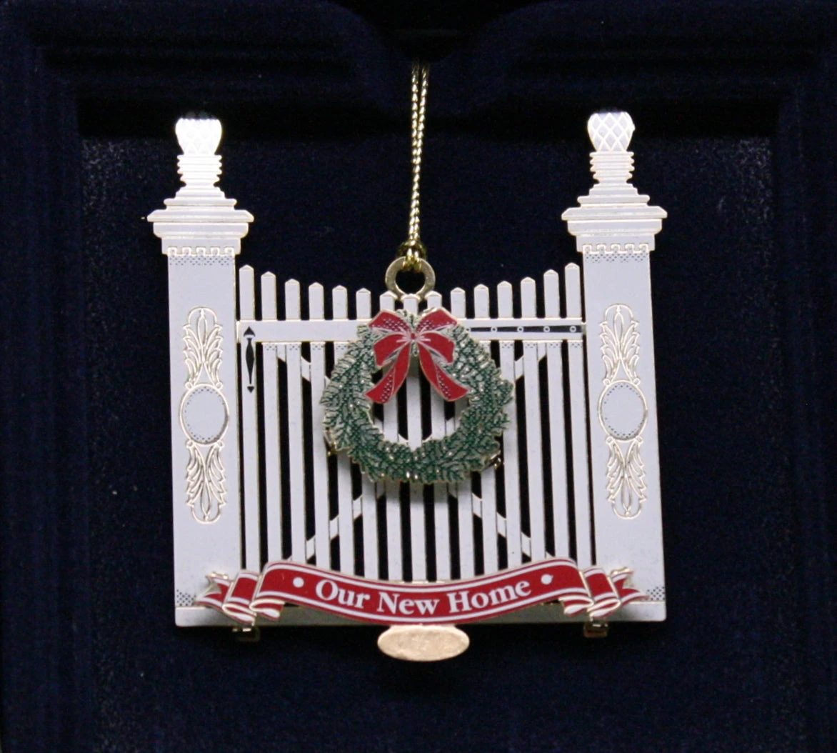 This annual ornament is beautifully handcrafted and made in the USA from solid brass, finished with 24 karat gold, screen printed with exquisite color and packaged in a decorative window box.