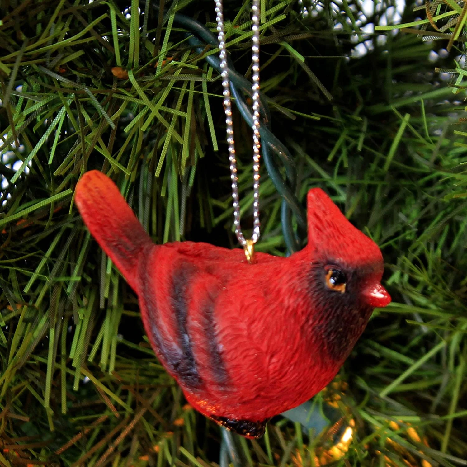 “A delightful sight during winter days, the red cardinal brings Christmas cheer upon its wings. The Joyous sight brings with it the blessings of good health and happiness for the coming year. Hang the cardinal high upon the tree to showcase its promise for the future”