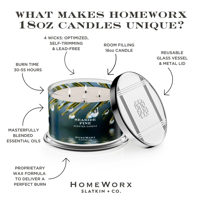 Bring the calming essence of a winter coastal retreat into your home with the Seaside Pine 4-Wick Candle. Perfect for the holiday season, this fragrant candle combines the invigorating scents of ocean pine and sea salt with delicate floral notes of water blossom, all wrapped in the warm embrace of sandalwood.