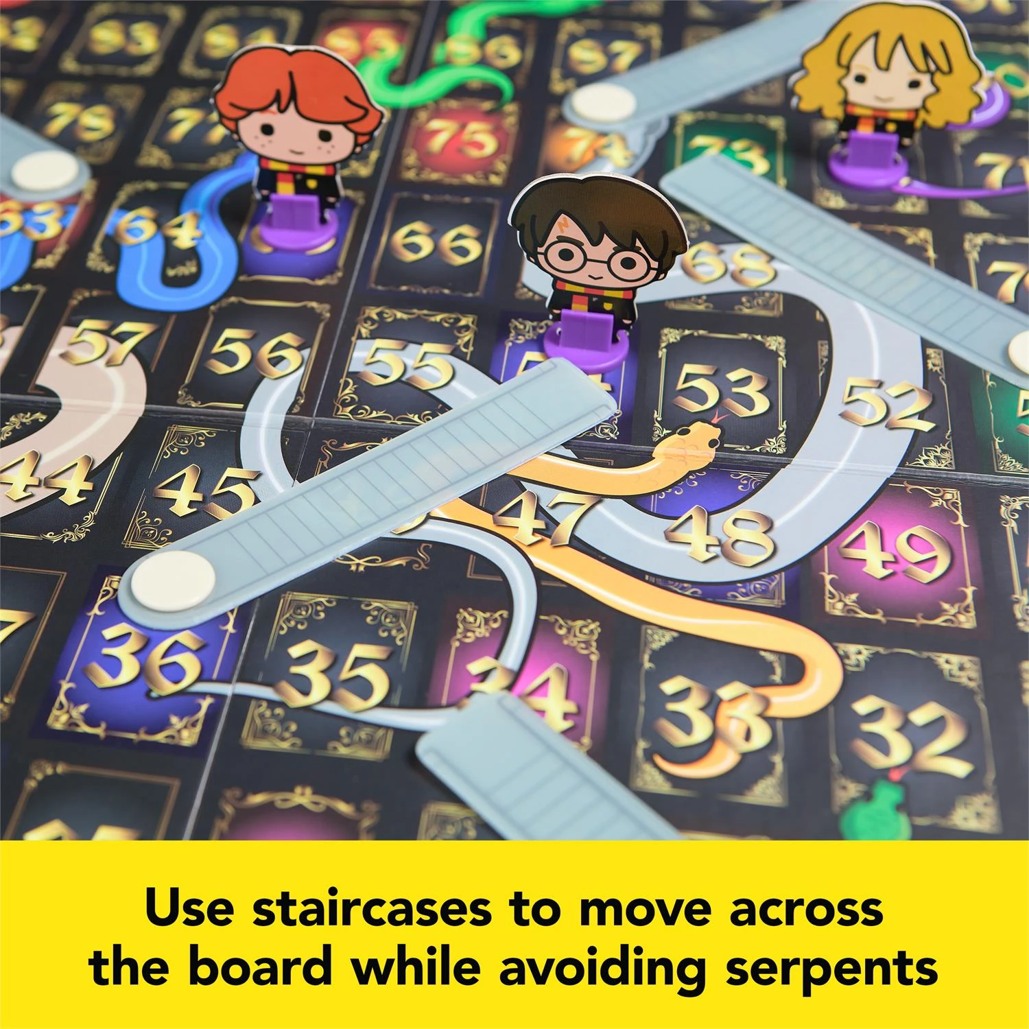 - ENTER THE WIZARDING WORLD OF HARRY POTTER: Play as your favorite characters – Harry, Hermoine, Ron, and Draco Ð as you race to the top of Hogwarts in this exciting wizarding twist on a classic game!
