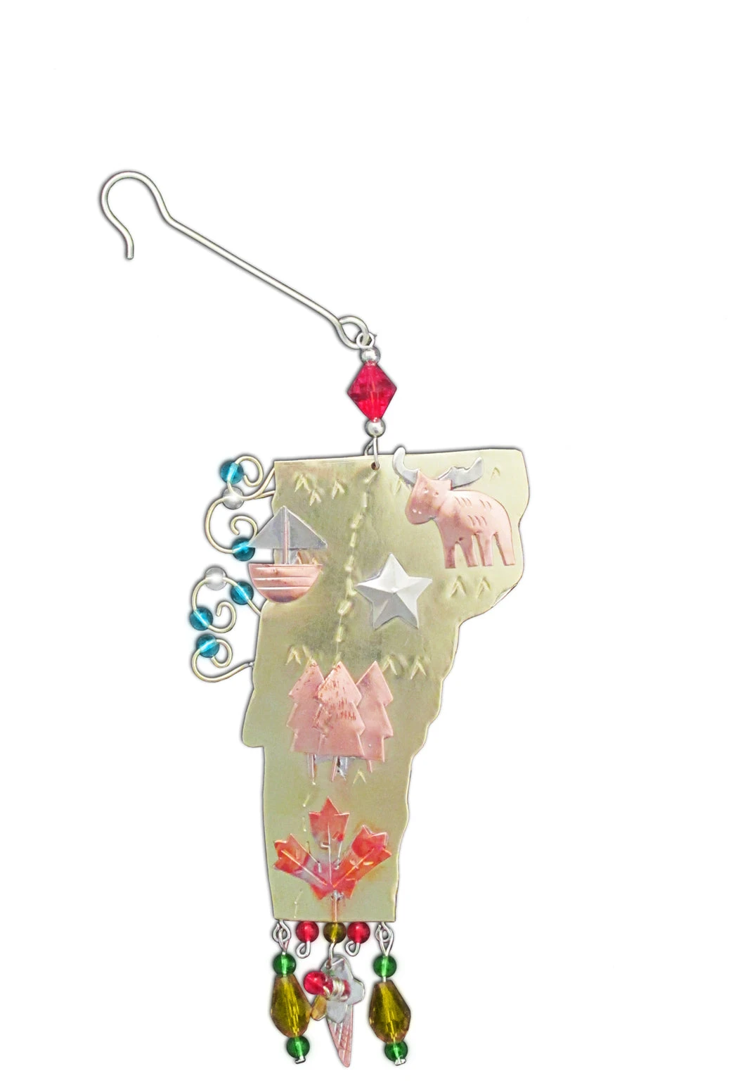 Amazing Handmade metal ornament in the shape of the Great State of Vermont finished with the iconic creemee charm.