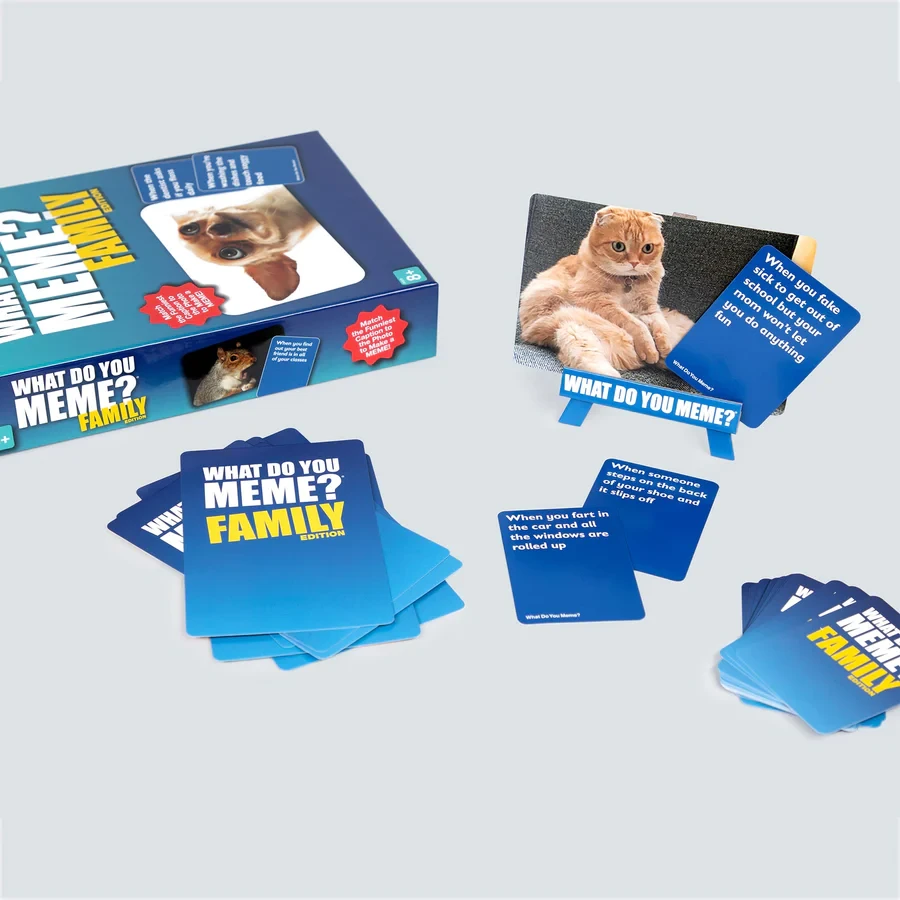 Our #1 bestselling game, What Do You Meme?® is now available in an all new family edition! All the fun of creating our own hilarious memes with our caption and photo cards, updated with completely family-friendly content. Everyone gets to be the judge, and everyone will get lots of laughs competing to be meme queen or king!